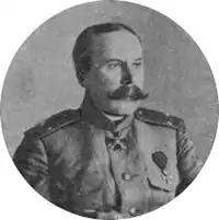 За то, что в боях с 7—9 декабря 1914 года, командуя колонной из трех родов войск и, получив приказание разбить наступающие для охвата левого фланга средней колонны значительные силы противника, перешел в наступление, принятыми своевременно мерами парализовал охват противника, в свою очередь охватил его фланг, причинил ему большой урон, отбросил и, перейдя в наступление также и на своем правом фланге, нанес неприятелю решительное поражение.