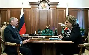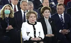 Валенти́на Ива́новна Матвие́нко (в девичестве Тю́тина, род. 7 апреля 1949, Шепетовка, Каменец-Подольская область, Украинская ССР, СССР) — советский и российский политический и государственный деятель, дипломат. Председатель Совета Федерации Федерального Собрания Российской Федерации с 21 сентября 2011 года. Сенатор Российской Федерации от исполнительного органа государственной власти Правительства Санкт-Петербурга с 31 августа 2011 года. Член бюро Высшего совета партии «Единая Россия»[1].