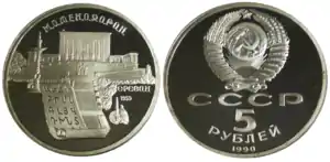 - В 1990 году в СССР выпущена юбилейная монета номиналом 5 рублей.