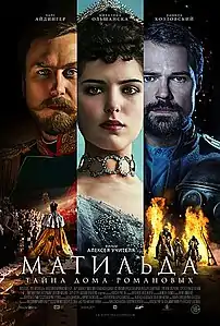 «Мати́льда» — российский художественный фильм режиссёра Алексея Учителя[4] в жанре исторической мелодрамы. Вышел в прокат под слоганом «Тайна дома Романовых». Сценарий рассказывает об отношениях между цесаревичем Николаем Александровичем и балериной Матильдой Кшесинской[5][6][7].