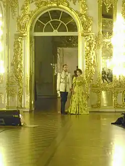 - Но интерьерные сцены при этом здесь и далее снимались в Екатерининском дворце Царского Села