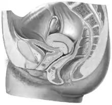 ![]() Расположение матки в тазовой области, фронтальная проекция | |