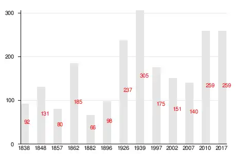 Согласно подворной переписи 1882 года в селе проживали 11 семей, число жителей: 28 м. п., 38 ж. п., лютеране: 27 м. п., 27 ж. п., разряд крестьян — собственники, а также пришлого населения 4 семьи, в них: 10 м. п., 10 ж. п., лютеране: 6 м. п., 3 ж. п.[20][24].