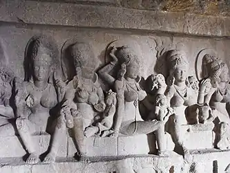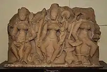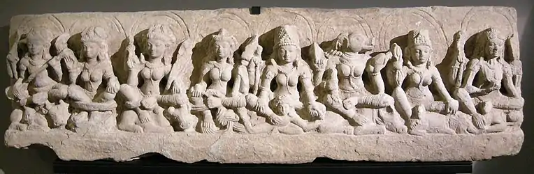 ![]() Одна из семи божественных матерей (Махешвари), VI век. Из коллекции Метрополитен-музея (Нью-Йорк). | |