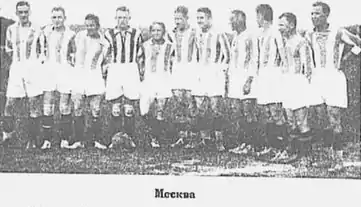 | Москва: Леонов - Рущинский, Ал.Старостин - С.Егоров, Селин, Никишин - И.Филиппов, С.Иванов, Исаков, В.Блинков, Канунников |
