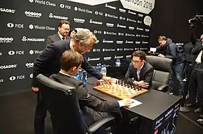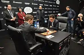 В матче приняли участие действующий чемпион мира Магнус Карлсен (Норвегия) и победитель турнира претендентов по шахматам Фабиано Каруана (США).