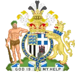 Герб Джорджа Маунтбеттена, 2-го маркиза Милфорд-Хейвена, после выдачи ему Королевского Викторианского Ордена
