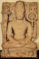 Вишну в медитативной позе вместе с фигурками айюдха-пуруш. Индия, X—XI века. Коллекция Правительственного музея Матхуры.