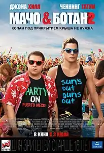 «Мачо и ботан 2» (англ. 22 Jump Street) — комедийный боевик режиссёров Фила Лорда и Кристофера Миллера[2][3] по мотивам телесериала Джамп стрит, 21. В главных ролях — Джона Хилл и Ченнинг Татум. Премьера состоялась в США 5 июня 2014 года, в СНГ — 3 июля.
