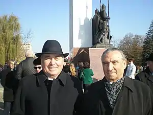 Р. Хунагов и И. Машбаш у памятника Навеки с Россией. 4.11.2014 Майкоп