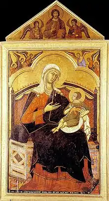 В Италии культ Мадонны был связан с понятием возвышенной, духовной красоты, обозначаемой в светском обиходе словом «маеста» (итал. maestà), которое противопоставляли «изяществу» (итал. grazia), и «плотской красоте» (итал. raghezza). Особым достоинством религиозного художника считалось умение соединить в образе Мадонны все качества. Мадонну почитали как образ неземной, возвышенной красоты и, одновременно, в качестве защитницы, заступницы в светских делах, во время войн и эпидемий. Подобная двойственность характерна именно для Италии и, позднее, стала основой куртуазного культа Нотр-Дам во Франции[2]. В Средневековье главными центрами культа Богоматери-Защитницы в Италии стали свободные города-республики Флоренция, Сиена и Пиза в ходе противостояния гегемонии Ватикана.