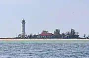 Во время Великой Отечественной войны остров был занят румынскими частями, воевавшими на стороне Германии. Зимой 1942 года, во время ухода оккупационных войск, маяк был взорван. После войны был построен временный деревянный маяк. В 1957 году был построен современный маяк с дизельным мотором и кислотно-щелочными батареями. После подвода на остров в 1969 году электрической линии маяк работает от электросети[1]. Маяк выполнен в виде восьмигранной башни высотой 30 метров, светит на расстояние до 15 миль[2].
