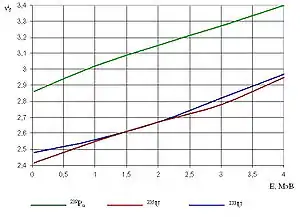 Среднее число нейтронов , образующихся при делении, зависит от сорта ядра-мишени и энергии налетающего нейтрона. Значения этой величины для некоторых ядер в зависимости от энергии налетающих нейтронов: