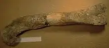 Часть бедренной кости мегалозавра была обнаружена в 1677 году в известняковой каменоломне возле Оксфорда (Великобритания). Окаменелость была передана профессору оксфордского университета Роберту Плоту (англ. Robert Plot; 1640—1696), который внёс её описание в свою книгу «Естественная история Оксфордшира» (1677). Он правильно опознал бедренную кость, однако, учитывая её огромный размер, не мог определиться с видом животного, которому принадлежали остатки. Позже кость стала причиной казуса. В 1763 году она попала в руки Ричарда Брукса, назвавшего животное Scrotum humanum (лат. scrotum — «мошонка», humanum — «человеческая, принадлежащая человеку»), поскольку кость напоминала окаменевшую человеческую мошонку. В то время уже была создана биноминальная номенклатура, и данное название теоретически имеет приоритет перед Megalosaurus, однако оно было забыто более чем на 50 лет и потеряло свой приоритет[8]. Поэтому первый открытый динозавр не стал называться Scrotum sp.