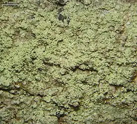 - Фотография представителя рода Megaloblastenia: Megaloblastenia mariginiflexa var. marginiflexa (рис. B; Dos nuevos registros de microlíquenes para la Argentina)