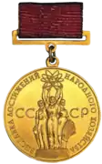 - В 1962—1986 годах — золотой, серебряной и бронзовой медалями «За успехи в народном хозяйстве СССР». Кроме медалей, участники выставки награждались ценными премиями. Иногда выдача медалей и ценных премий происходили одновременно. Выдачи медалей и ценных премий (в форме разнообразных подарков) производились на основе постановлений Главного комитета Совета ВДНХ. Выписки из приложения к постановлениям выдавались всем награждённым.