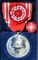 Медаль обычного члена Общества тоже изготавливается из серебра, первоначально не имела розетки. В военные годы чеканилась из сплавов с примесью серебра или из алюминия, а после Второй мировой войны — из алюминия с 16-миллиметровой зелёной розеткой на ленте. В настоящее время её изготавливают также из алюминия, но розетка снова отсутствует. Медаль вручается при вступлении в Общество японского Красного креста.