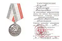 | Медаль «Ветеран труда» | |||