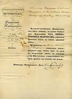 | Кому вручалась | лицам, имевшим отношение к Крымской войне | ||