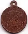 - все чины армии и флота, а также ополченцы, малороссийские казаки, милиция[10], принимавшие участие в боевых действиях, состоявшие в войсках, приведённых в боевую готовность, или служившие в местностях, бывших на военном положении, которым не полагалась медаль на Георгиевской ленте,