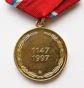 На оборотной стороне медали по окружности — лавровый венок, в центре — цифры «1147—1997».