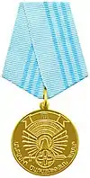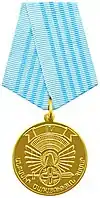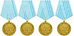 Медаль носится на левой стороне груди, после медали «За боевые заслуги».