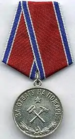- за смелость, отвагу и самоотверженность, проявленные при тушении пожаров, спасении людей, социалистической собственности и имущества граждан от огня;