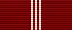 Медаль при помощи ушка и кольца соединяется с пятиугольной колодкой, обтянутой шёлковой муаровой лентой крапового цвета, в центре которой нанесены узкие белые полоски. На медали I степени — одна, II степени — две, III степени — три. На оборотной стороне колодки имеется приспособление для крепления медали к форменной одежде.
