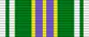 Медаль при помощи ушка и кольца соединяется с пятиугольной колодкой, обтянутой красной шёлковой муаровой лентой шириной 24 мм с жёлтыми полосками по краям ленты шириной 1,5 мм каждая, отстоящими от края ленты на 1 мм. Посередине ленты синие полоски шириной 2 мм: для медали I степени — одна полоска, для II степени — две полоски, для III степени три полоски. Синие полоски разделены красными полосками шириной 2 мм. Колодка с медалью при помощи булавки крепится к одежде.