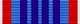 Лента медали муаровая голубого цвета с четырьмя синими полосками посередине, тонкой белой и пошире красной полосками по краям.