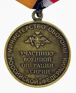 Меда́ль «Уча́стнику вое́нной опера́ции в Си́рии» — одна из восьми ведомственных наград Министерства обороны Российской Федерации. Учреждена приказом Министра обороны Российской Федерации от 30 ноября 2015 года № 732[1], оставлена (с небольшими изменениями) в новой системе ведомственных наград приказом Министра обороны Российской Федерации от 14 декабря 2017 года № 777[2].