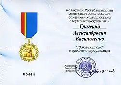| Медаль «10 лет Астане» | |||