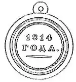 - Медаль «1814 года». 1814 г. (недоступная ссылка). Справочник орденов и медалей от Российской империи до наших дней. Дата обращения: 1 июля 2014. Архивировано 14 сентября 2013 года.
