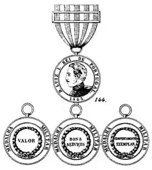 2 октября 1863 года декретом Государственного секретаря по делам войны была учреждена медаль Доблести (порт. Valor), как первый из трёх классов Военной медали.