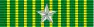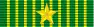 Лента медали шёлковая муаровая 35 мм. шириной зелёного цвета с десятью тонкими полосками жёлтого цвета.