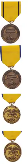 На реверсе — в центре изображение якоря с цепью,[3] которые в когтях держит орёл[4] с распростёртыми крыльями, под орлом — надпись FOR SERVICE, над расположенными внизу по дуге изображениями дубовой (слева) и лавровой (справа) ветвей[5]; вверху по дуге надпись UNITED STATES NAVY, или UNITED STATES MARINE CORPS.