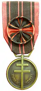 | Основания награждения | за веру и мужество сражавшихся во Франции и за рубежом, которые внесли вклад в сопротивление французского народа против врага и его пособников с 18 июня 1940 | ||