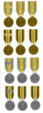 Медали, вручённые в мирное время, носились на желтой ленте с черными полосами. Медали, врученные в годы Первой мировой войны носили на желтой ленте с синими полосами.