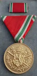Медаль носилась на левой стороне груди. Медали были изготовлены в Германии и Швейцарии и несколькими партиями отправлены в Болгарию. Медалью были награждены 50 000 человек в Болгарии и около 199 000 иностранцев (немцев, австрийцев и венгров) которые являлись союзниками Болгарии в Первой мировой войне.