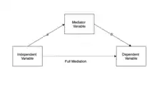 При полной медиации включение переменной медиатора уменьшает отношение между независимой и зависимой переменной ( на диаграмме) до нуля.