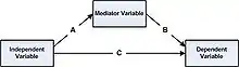 В статистике модель медиации стремится идентифицировать и объяснить механизм, лежащий в основе наблюдаемой связи между независимой переменной и зависимой переменной, путем включения третьей гипотетической переменной, известной как переменная-медиатор, или промежуточная переменная. Вместо прямой причинно-следственной связи между независимой и зависимой переменной модель медиации предполагает, что независимая переменная влияет на ненаблюдаемую переменную-медиатор, которая, в свою очередь, влияет на зависимую переменную. Таким образом, переменная-медиатор служит для выяснения характера взаимосвязи между независимыми и зависимыми переменными[1].