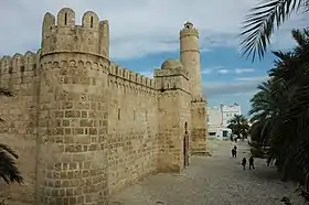 В 851 году аглабидский амир Абу-ль-Аббас Мухаммед I лично заложил в Сусе Большую мечеть, по виду больше напоминавшую крепость. Моделью для сусской мечети послужила мечеть Сиди-Окба в Кайруане. В 859 году по приказу амира Ахмеда ибн Мухаммеда вокруг разросшегося до размеров 32 га города была построена мощная каменная городская стена с восемью воротами, а в самой высокой точке города возведена неприступная цитадель — касба, доминантой которой стала башня Аль-Халеф, использовавшаяся в качестве сигнальной башни («манара»). О времени завершения строительства свидетельствует соответствующая куфическая надпись на южной стене медины. После возведения городских стен и касбы сусский рибат утерял значение крепости и мурабиты сосредоточились на ревностном исполнении его религиозной функции, сохранив рибат в качестве духовного центра города[3][1][7][8].