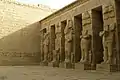 В значительной степени комплекс в Мединет-Абу копирует величественный Рамессеум, заупокойный храм великого фараона Рамсеса II, уступая ему, однако, по роскоши и размерам.