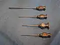 | 4 | скошенное на 10 — 12° острие иглы; рекомендовано для биологии и медицины; на заказ возможна поставка особых типов острия, напр. со скосом 45° |