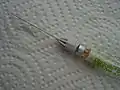Стоматологическая игла вставленная в резиновую пробку сменного картриджжа карпульного шприца
