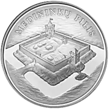 Медницкий замок на литовской серебряной памятной монете 50 литов 2006 года.
