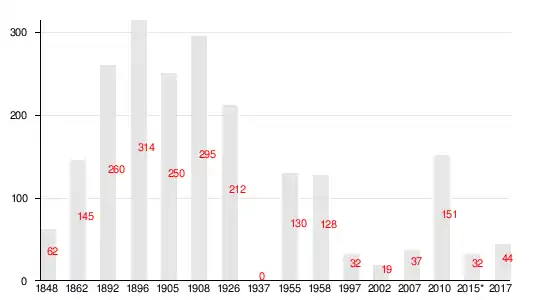 | 1848 | 1862 | 1892 | 1896 | 1905 | 1926 | 1937 |