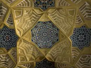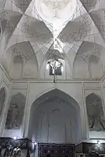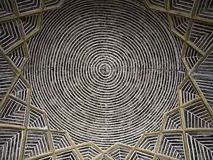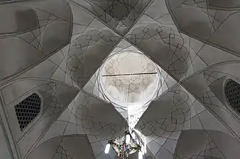 Интересны в конструктивном отношении декоративные своды мионханы, находящиеся за воротами. Мионхана состоит из купольных отсеков, который служит коридором для прохода во двор[22]. Свод над мионханой имеет невысокую стрелу подъёма замысловатую картину отлитых из ганча рёбер. Последние образуют решётку щитовидных парусов, выведенных фигурной кирпичной кладкой с чёткой расшивкой белым раствором швов, формирующих нарастающие к вершине многогранника[9][23].