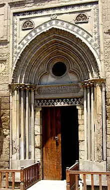 Самым уникальным элементом медресе ан-Насира Мухаммада является его готический мраморный портал, приобретённый у христианской церкви в городе Акра после победы аль-Ашрафа Халиля над крестоносцами в 1291 году[2]. Когда эмир наткнулся на церковь с этим порталом в качестве ворот, он решил перевезти её целиком в Каир[1]. Он хранил его у себя до конца правления аль-Ашрафа Халиля и в течение всего первого периода царствования Мухаммада I ан-Насира, но был изъят султаном Китбугой аль-Адилем и использован в этом медресе[1].