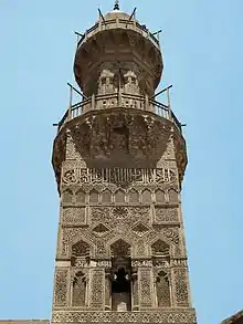 Только нижняя прямоугольная часть минарета оригинальна, второй уровень, скорее всего, был добавлен султаном Иналом, так как он напоминает другой каменный минарет, построенный им от своего имени[2]. Он имеет восьмиугольный ствол и зелёные стеклянные или керамические элементы, которые заполняют лепнину[2]. Самый верхний уровень минарета, вероятно, относится к османской эпохе[2].